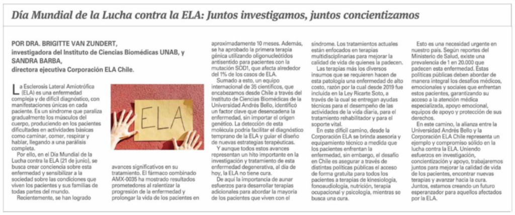 Esta sección reúne artículos, entrevistas y otras apariciones en medios de comunicación donde se menciona a la Corporación ELA. A través de estas publicaciones, se refleja el compromiso, las acciones y el impacto de nuestra organización en la promoción de derechos, la sensibilización sobre la Esclerosis Lateral Amiotrófica y el acompañamiento a quienes conviven con esta condición.